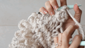 Rep rows 1 and 2 once more for a total of 4 rows, 2 rows of loops.