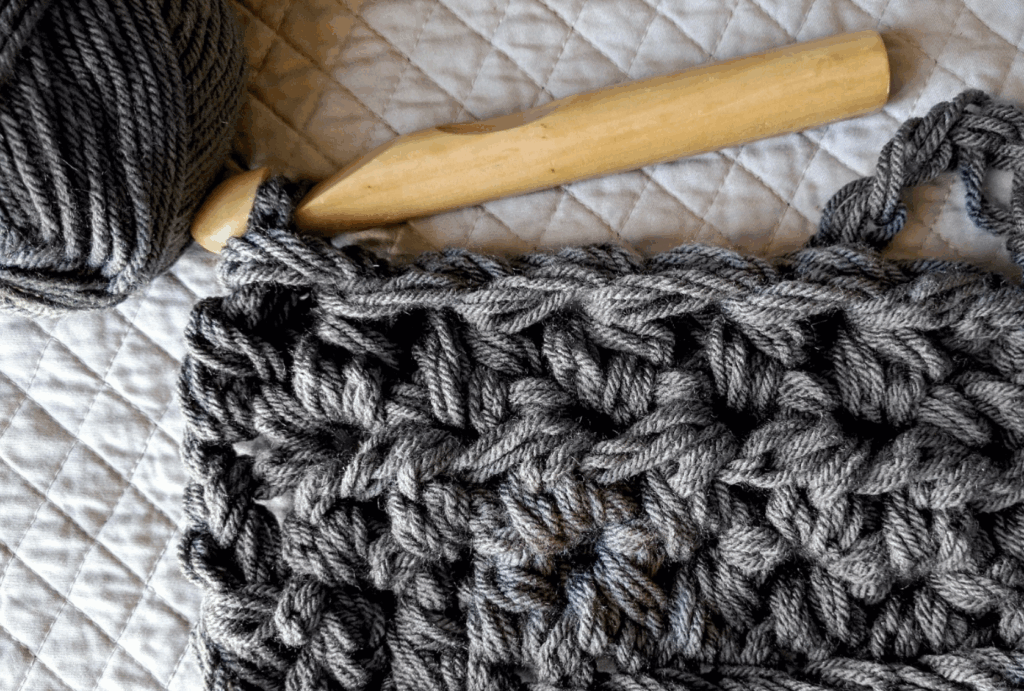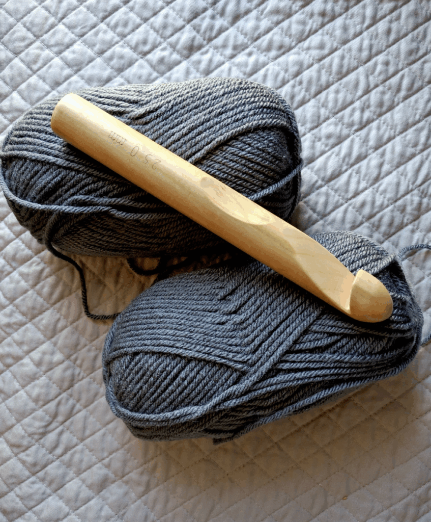 All you need are two skeins of your favorite worsted (or bulkier) weight yarn and a giant 25mm crochet hook. I love these hooks for all sorts of super bulky projects. You can find them here.You can use a smaller hook and it will produce a more “rope-like” strand of bulky yarn.